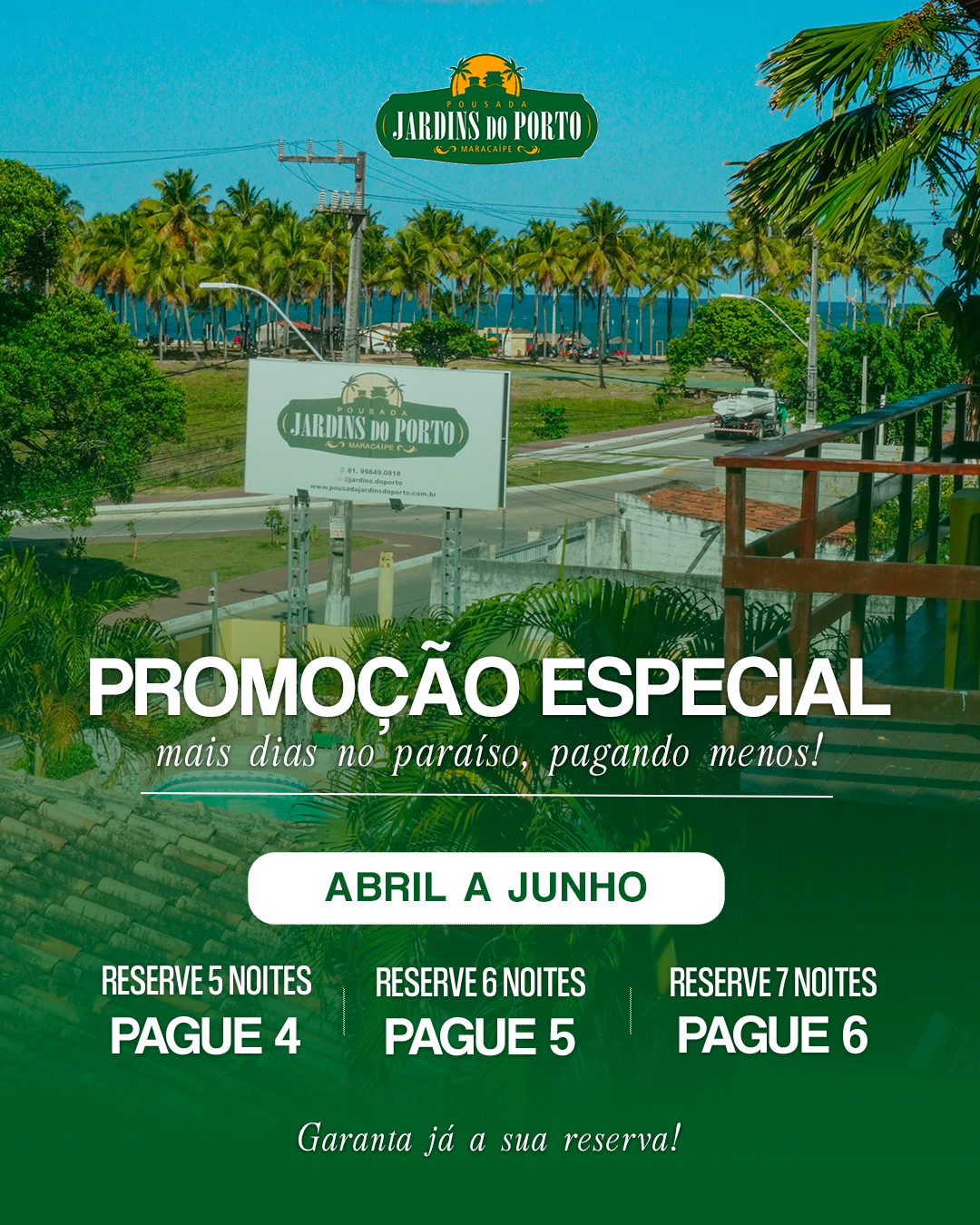 A Jardins do Porto fica localizada na Praia de Maracaípe, á 400m do mar, na região de Porto de Galinhas, à 2,5KM das piscinas naturais/ 5 minutos de carro, e à 1,5km do Pontal de Maracaípe . Destacando-se por sua localização ser em um “Ambiente de Natureza Exuberante”, e próprio para práticas de esportes, tais quais: Standup Paddle, Surf, Kite Surf, Wind Surf e Slackline.